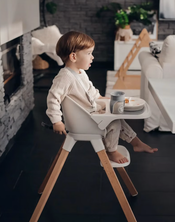Chaise haute bébé disponible en blanc, gris et noir. Confortable, stable et facile à nettoyer, elle accompagne votre enfant dès ses premiers repas. Design moderne, matériaux durables et ergonomie parfaite pour le quotidien.