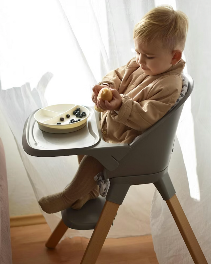 Disponible en blanc, gris et noir, cette chaise haute s’adapte parfaitement à la décoration de votre cuisine ou salle à manger. Son design épuré et sa structure légère en font un indispensable du quotidien pour accompagner bébé dans l’apprentissage des repas.
